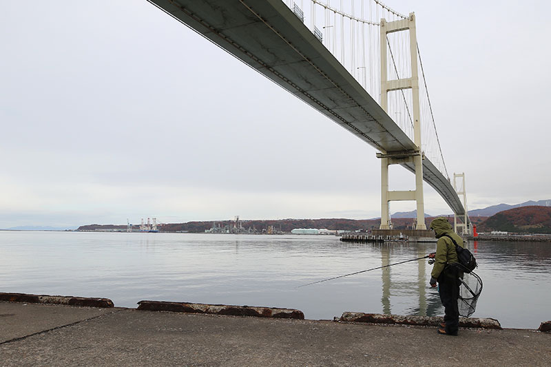 今大会の競技エリアを簡単にご紹介します。まず、大会本部を置くのは、パワーオーシャンカップにおいて馴染み深いノースロックフィッシュの聖地「室蘭」。そこに、ロックフィッシュの宝庫・噴火湾のなかから豊浦エリアの漁港をピックアップした複合エリアでのラン&ガンバトルとなります。西から「礼文」「大岸」「豊浦」「虻田大磯」「虻田」、大きく離れて「室蘭港」という布陣です。西端の「礼文」と、本部を置く「室蘭港フェリー埠頭」とは直線距離で見ても60km弱あり、端から端からまで移動するだけでも片道一時間ほどを要します。実釣時間を優先して移動の少ない室蘭港に残るべきか?はたまた移動時間のリスクをとってでも豊浦エリアへ向かうべきか?選手たちの間で様々な戦略が交錯します。 事前の釣況を複数のアングラーにヒアリングしてみると、「アイナメのサイズがのびない」「海の中はまだ冬になりきれていない」といった声が帰ってきます。前日の競技エリア確認時に各所でアングラーの姿を見かけましたが、釣れているアイナメは確かに小型が中心。場所によっては高水温を好むフグがまだ残っている光景も見ます。本来、11月上旬であれば海水温低下とともにスポーニングを意識した大型のアイナメが射程圏に入ってくる時期。しかし、現状は海水温が適温まで下がり切っていないものと推測されます。多くの選手もが期待していたハイスコア戦とはならず、シビアなロースコア戦になりそうな気配が漂います。 |