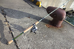 まずは本部近くのL字埠頭にエントリー。足元の岸壁際をインザベイトバス7g(ノリーズ)で縦に探る。一通り探るも反応が無かったため、フェリー埠頭に移動。同じようにインザベイトバス7g(ノリーズ)で探るも反応無し。ルアーをラッピングミノー10g(ノリーズ)にシフトするも局面を打開できず・・・。ロッドをロックフィッシュボトムTR RBT610MSから、ロックフィッシュボトムTR RBT711LSに持ち替え、2-1/2”パドチュー(ノリーズ)の14gキャロライナリグで周囲を探る。すると小さなバイトが時折入る。しかしなかなかフッキングしない。フッキングしてもノンキーパーのアイナメ・・・。第1ステージはノーフィッシュで終えた。 |