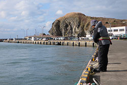 第2ステージは追直港ランガン。風裏になるかと思われた追直港でしたが、現場に立つと強い横風が。それでもゲームは十分成立するレベルなので、AM9:30スタートフィッシング!追直港はさほど大きくない規模の漁港ですが、ロックフィッシュは豊富。岸壁際でも沖狙いでも十分可能性のある実績フィールドです。 あらかじめ目をつけたポイントをじっくりと丁寧に攻める選手、状況打破の糸口を探して港の西側にあるシャローエリアに賭ける選手、気になるポイントをとにかくランガンして魚とコンタクトするタイミングを模索する選手・・・攻め口はそれぞれ。第1ステージ同様、数が狙える状況ではなさそうな雰囲気。ワンミスが命取りになりかねないゲーム展開に、見ている私達まで緊張感たっぷり。そしてAM12:30、遂にストップフィッシングの時間に。 |