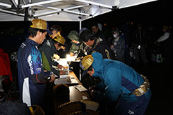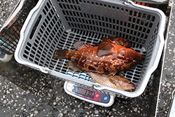 10:00からウエイインを開始するも帰ってくる選手は無し。いつ、どのタイミングで、キッカーフィッシュが出るかわからない展開だけに、ギリギリまでウエイインしないのは当然といえば当然でしょう。1kgを超えるキジハタやオオモンハタが突然来るかもしれない・・・ドキドキの時間が続きます。10:30過ぎ、徐々に選手達が検量所周辺へと集まり始めます。“やり切った”という表情でウエイインする選手もいれば、“まだチャンスがあるかも”と近くでキャストを続ける選手の姿も。ツアー戦になり、少しでも年間ポイントを稼ぐということを考えれば、その一尾がもつ意味も大きくなります。オープントーナメントの頃には無かった一面をみることができました。一方、ウエイインする選手の釣果に目を向けると、予想通り1kgクラスのキジハタが数尾持ち込まれます。おもわず歓声が沸く素晴らしい魚に、谷山一文字が持つポテンシャルの高さを改めて感じられたウエイインとなりました。結果、38名中29名がウエイイン。ウエイイン率76.3%と非常に高い水準。九州ツアーの船出として素晴らしいスタートとなったのではないでしょうか。 |