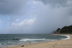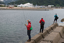 朝の雨がまるで嘘のように青空が広がる11:00。検量開始の時刻ですが、まだ誰も帰ってきません。本部から見える範囲に20名近くの選手がロッドを振っています。まったく帰ってくる気配を感じないところを見ると、鼠ヶ関でも釣果が出ていると思われます。何とかキーパーを一尾絞り出せれば・・・そんな空気感が、離れた我々のもとへもひしひしと伝わってきます。11:30頃から徐々に選手が並び始めます。その列が意外にも途切れません。海の状況から釣果を心配していましたが、良い意味で裏切られたウエイインとなりました。結果、78名中46名がウエイイン。率にすると59.0%と、昨年に続き高水準となりました。 |