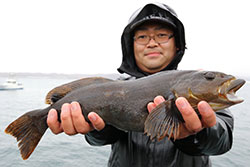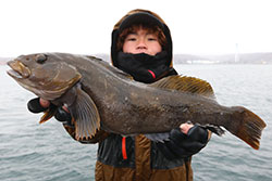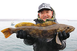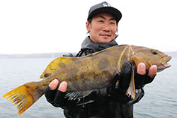 アイナメ3尾、2,620g 九州代表としての参戦。自身にとって、はじめての北海道でのゲーム、はじめてのルアーによるアイナメゲーム。東側北面に立ち位置をとる。遠投をし、リーリングでボトムの変化を探っていくゲームを展開。8:30前後から魚をキャッチしていくなかでリミットメイクに成功。 |