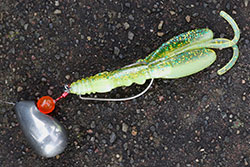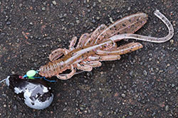 アイナメ3尾、3,520g 玉川選手同様に終始、積極的に移動を繰り返す姿が目立った菅原選手。3-1/2”レディーフィッシュ・ジグヘッドリグ等で壁際ゲームを中心に組み立てていった。途中、チェイスはあれどなかなか喰わせられない状況に悩むも、結果的に3,500gを超えてくるあたり、スーパーロック2度のクオリファイはやはり伊達じゃない。 |