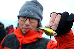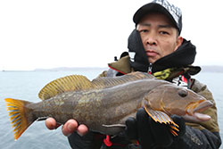 アイナメ3尾、3,740g 開始早々、壁際をタダマキ132でトレースし、全選手のなかで最も早く1尾目をキャッチした玉川選手。意外にも早々にゲームを切り替え、東端北面のシャローを遠投で探り2尾目をキャッチ。そこから、再び壁のゲームへとシフト。タダマキ132、同132JP、フラチャット+エコギア熟成アクア スーパーどじょう、3-1/2”レディーフィッシュ・ジグヘッドリグなどをローテーション。とにかく探り歩きリミットメイク、入れ替えを行っていった。 |