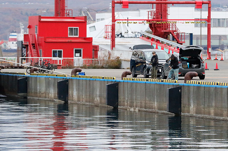11/9、4:40。大会本部となる室蘭港フェリー埠頭に到着。気温は6℃。昨日ほどの寒さはなく、風もありません。まだ暗いなか、既に多くの選手が集まっており、早々に受付準備を済ませます。受付完了後、ミーティングを実施。そして6:00、ついにファーストフライトのコールとなります。20台ずつフライトしていき、6:15頃には全選手がフライトしていきました。当日の天気予報は曇り。潮回りは中潮。満潮が7:42(潮位129cm)、干潮が10:19(潮位98cm)というタイドスケジュール(基準:室蘭、気象庁発表)。13:00のストップフィッシングまでの競技時間中は、比較的潮が高い状況下でのゲームとなります。 |
